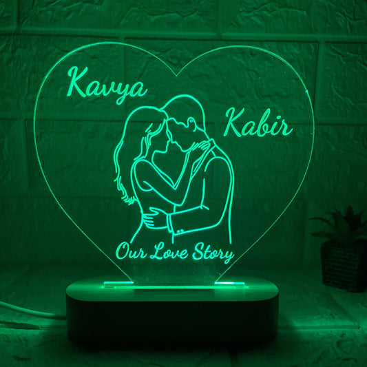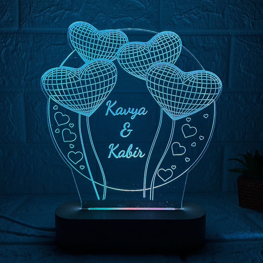 Personalised 3D Illusion Heart Design LED Lamp with Couple Names or Text | Romantic Gift for Couples, Weddings, Anniversaries, Birthdays, Valentine’s Day & Home Decor, Multicolor (DNFHEC2M)
