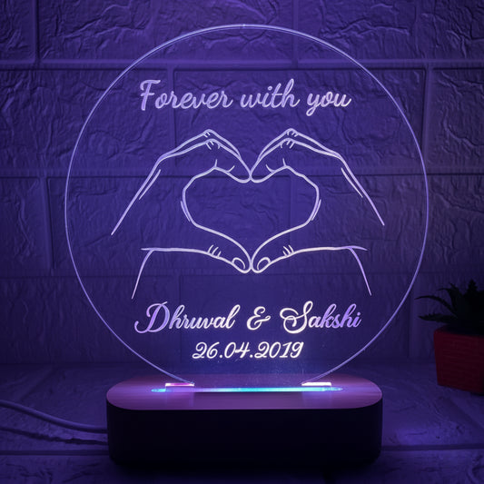 Personalised 3d illusion Round Forever Hand Design Night Lamp with Couple Names & Date/Text | Unique Gift for Couples, Wedding, Anniversary, Birthday, Valentine’s Day & Home Decor (DNFRHA4)