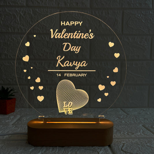 Nexify Fusion Personalised Valentine’s Day LED Acrylic Lamp with Wooden Base | Romantic Round Night Light with Name Engraving | Special Love Gift for Couples (DNFVA11)