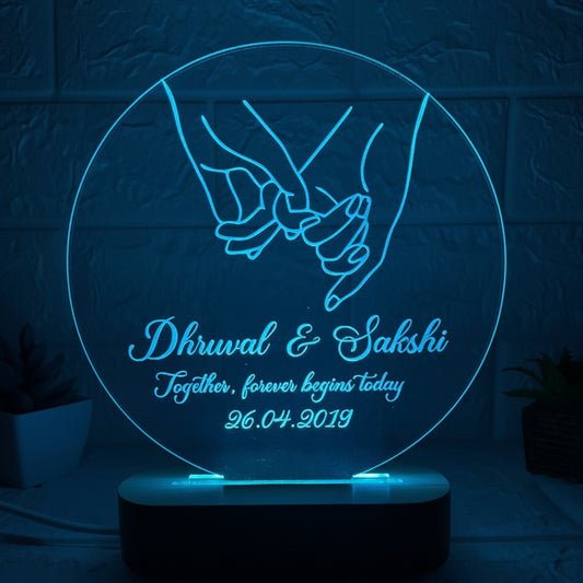 Personalised 3D Illusion Hand Design LED Night Lamp with Couple Names, Date or Text | Gift for Couples, Wedding, Anniversary, Birthday, Valentine’s Day & Home Decor | Multicolor (DNFRHA5M)