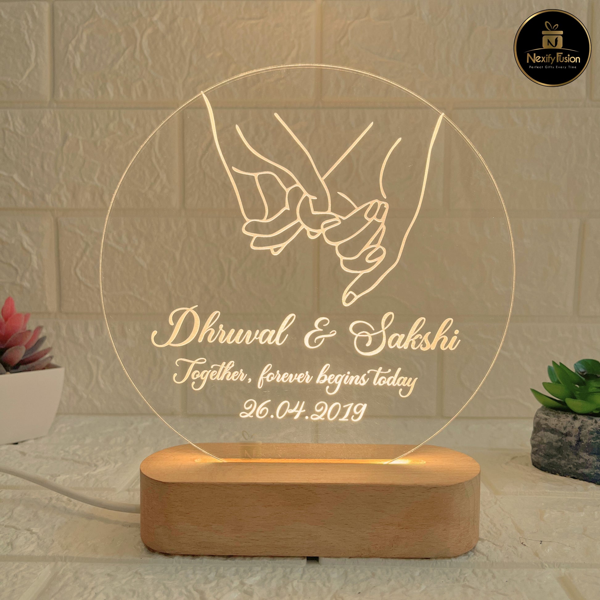 Personalised 3D Illusion Round Hand Design Night Lamp with Couple Names & Date/Text | Best Gift for Couples, Wedding, Anniversary, Birthday, Valentine’s Day & Home Decor (DNFRHA5)